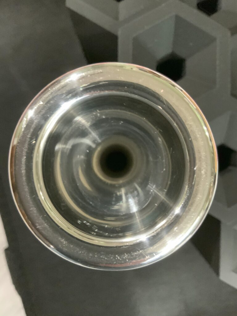 One spot on the rim has 4 very small dings towards the outside edge and on the opposite side of the mouthpiece a scratch also onĀ the outside edge.
